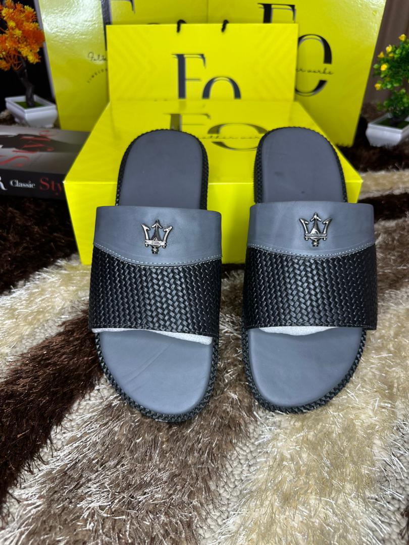Buy Gray and black slide online at Folianoleatherworks | Huxxle